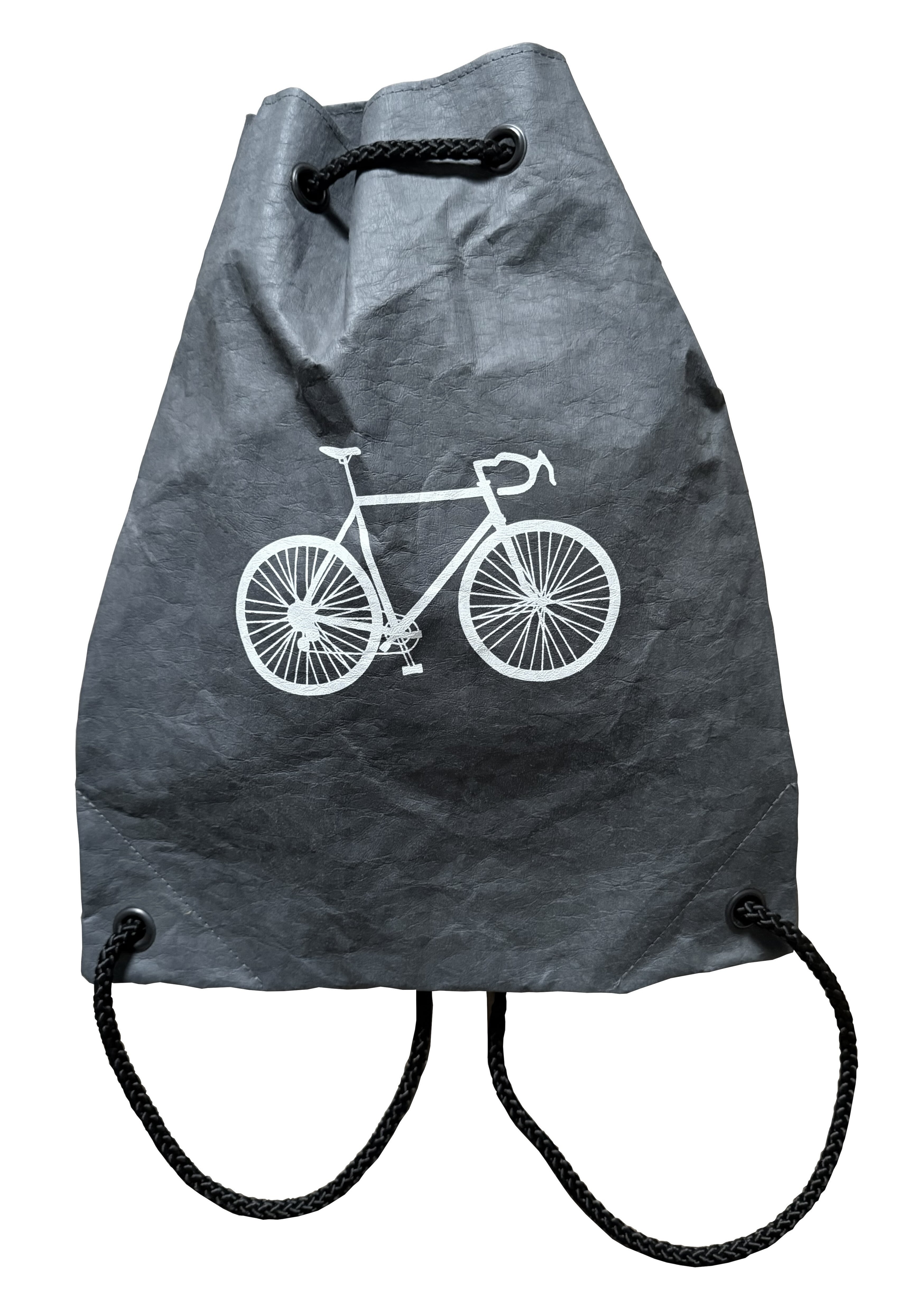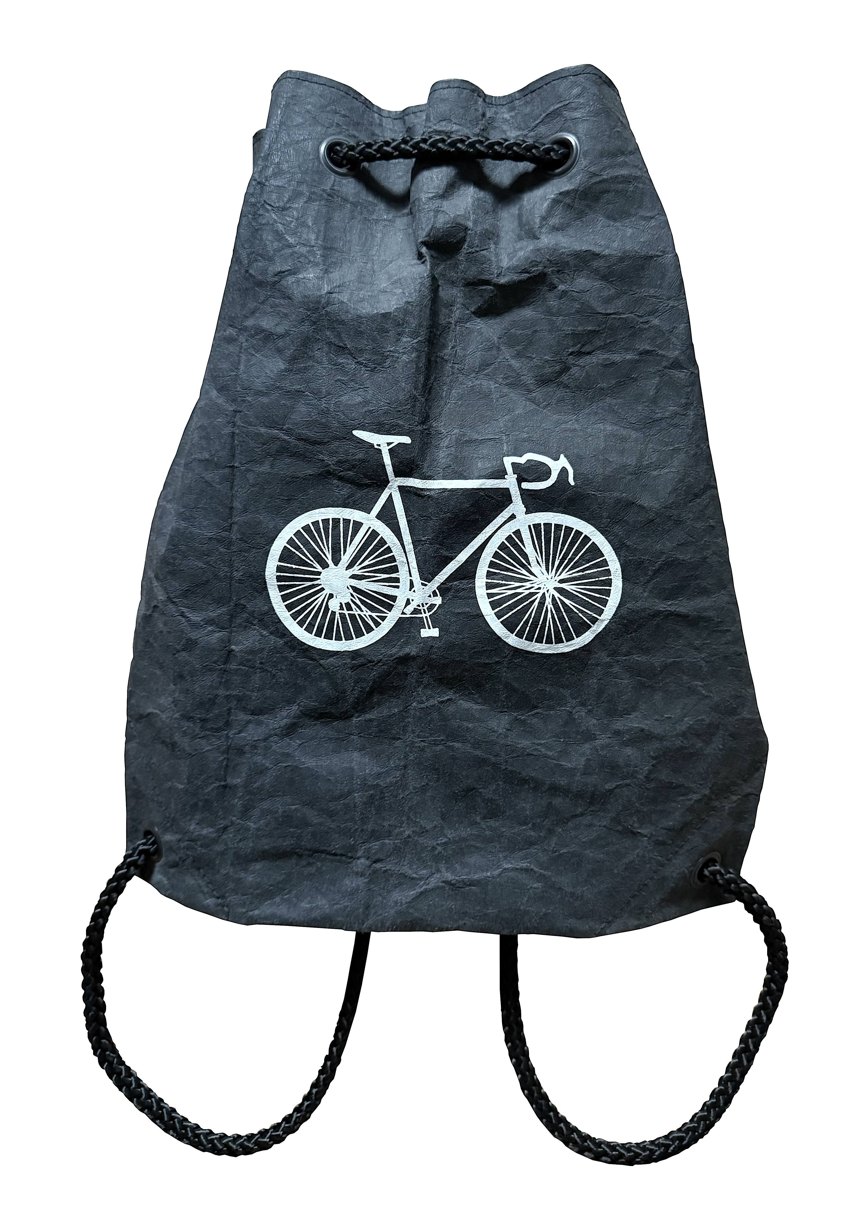 Rucksack / Turnbeutel mit Rennrad, waschbares Papier, schiefer, schwarz, stone
