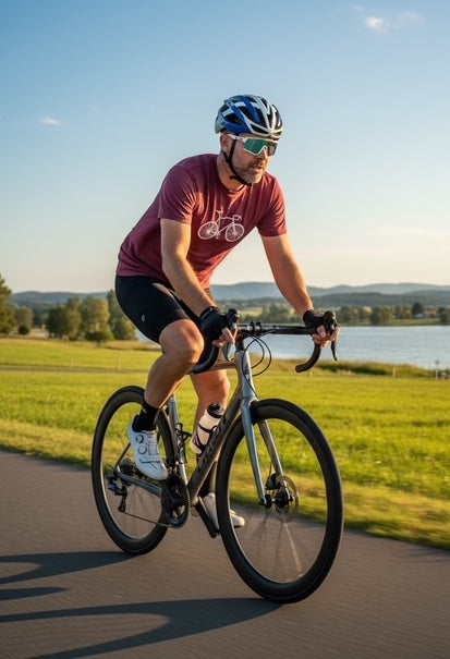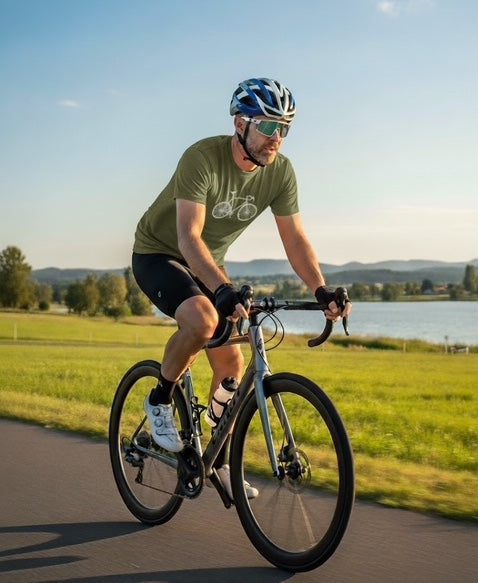 T-Shirt Rennrad Bio Baumwolle in den Farben bordeux, khaki, schwarz und cool gray
